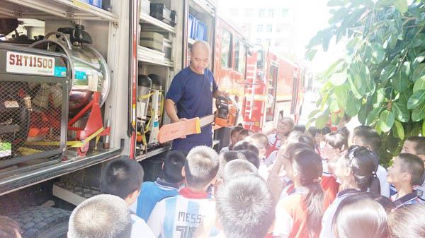 最后,大队指战员将参加活动的两辆消防车辆向学校师生们开放参观,引起了师生们浓厚的学习兴趣,看到新奇的消防设备不断发问:“消防员叔叔,这台机器是做什么用的?”“消防员叔叔,这是光头强的伐木机吗?”……一旁的消防指战员们细心的为围观的师生们解答各个问题,现场氛围十分热烈。