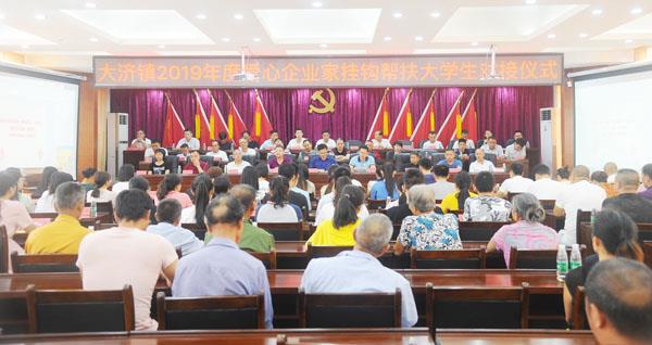 为了帮扶贫困大学生圆满完成大学梦,认真做好教育事业不让一位贫困学生失学。日前, 仙游县大济镇在镇政府举行2019年度爱心企业家挂钩帮扶贫困大学生对接仪式。37名大学生每人领到10000元助学金,这是大济镇党委、政府继2016年以来第4次举办对接仪式。大济镇党委政府积极响应党和政府的号召,发挥优势,主动作为,通过鼓励企业家参与“民企助才”、“栋梁工程”、“金秋助学”等公益事业,积极牵线搭桥,联系爱心企业家通过“1+N”结对子、爱心帮扶等形式帮助建档立卡贫困户学子完成学业,四年来累计发放助学金140万元,140位家乡学子得到帮扶。