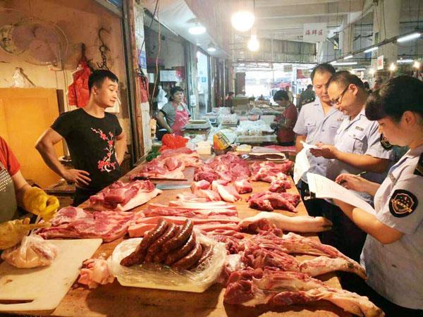 本报讯 为进一步加强猪肉市场管理,消除食品安全隐患,切实保障群众“舌尖上”的安全,近日,城厢区市场监督管理局龙桥所按照上级《关于加强猪肉市场监管》通知要求,积极开展猪肉市场专项整治行动。