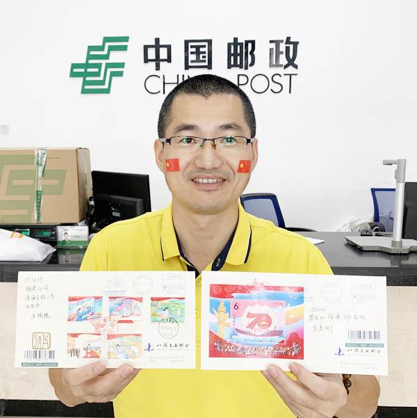 莆田邮政为此启用全国统一版本的纪念邮戳、邮资机宣传戳各1种,前者以华表、烟花为主图,后者以庆祝中华人民共和国成立70周年活动标识、“中华人民共和国成立七十周年”的中英文为主要设计元素。按照惯例,全国版本的纪念邮戳、邮资机宣传戳会在其地名、规格上会存在差异,因此带动邮友们的交换、收集热情。来自宁夏的邮迷董武很开心地说,这次国庆假期赶上这次“两戳”启用的好时机,自己才有机会带上家人来邮局亲手制作封片,乐享集邮亲子的美好时光。集邮爱好者们或以一票一封、套票一封、票张同封、小版做封等形式各异的创意,当天发出了数千封“国庆祝福”。(时报记者 吴芹芹 通讯员 邱天)