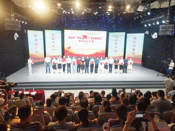 本报讯 9月24日,我市举行“辉煌70年 美丽新莆田”理论宣讲比赛决赛,来自全市各县区机关单位、学校共11位选手同台传声,共同赞颂伟大祖国70年的辉煌,为大家带来发生在各行各业的精彩故事。