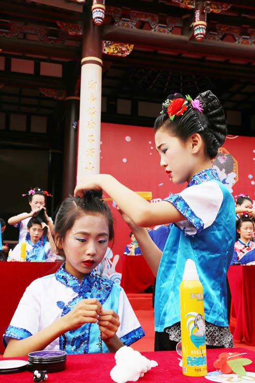 10月31日下午,作为第四届世界妈祖文化论坛系列活动之一,第四届湄洲女发髻技艺表演活动在湄洲岛妈祖祖庙圣旨门广场举行,与往年的比赛不同,今年的技艺展示选手全部来自小学、中学和岛上的年轻人,旨在培养新一代的青少年掌握“湄洲女发髻”技艺,传承非遗技艺,传播妈祖文化,弘扬妈祖精神,进一步推动妈祖信俗非物质文化遗产项目保护工作。