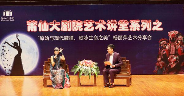 11月1日下午,国家一级演员杨丽萍在莆仙大剧院内和粉丝们现场共同分享了她的艺术创作历程,介绍了11月6日在莆仙大剧院的演出《云南映象》背后的故事。