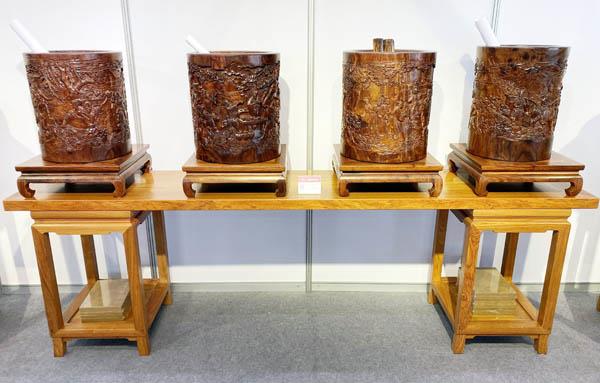 据悉,由中国轻工业联合会举办的首届中国工艺美术博览会11月7日至10日于六朝古都南京举行,共展出6万余件红木家具、陶瓷、雕刻、织绣、文房四宝等全品类工艺美术优秀作品,以高水平、权威性、行业突出、特色鲜明为目标,展示新时代工艺美术发展成就,推动行业繁荣发展,彰显中国传统文化自信。徐元宝的精品力作《四大经典》画筒亮相莆田团,让仙作红木文化焕发生机,很是吸引眼球,大受参观者、收藏家和专家学者、各地工艺美术大师好评,并在展会期间举办的“百鹤杯”首届中国工艺美术设计创新大赛中从2570件参选作品中脱颖而出,夺得“百鹤奖”。