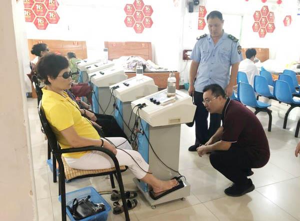 图为城厢区市监局“双随机”检查人员,在医疗器械经营企业双随机检查现场,认真查看正在体验的器械相关信息。 (舒易刚 林萍 田野)