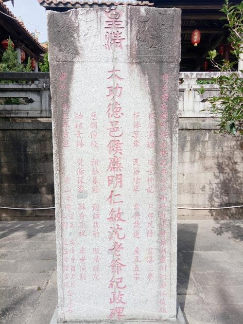 此碑高294厘米,其中碑额高59厘米,篆书“皇清”二字,碑身高235厘米,宽82厘米,厚14厘米。存立梅峰寺天王殿后广场上。