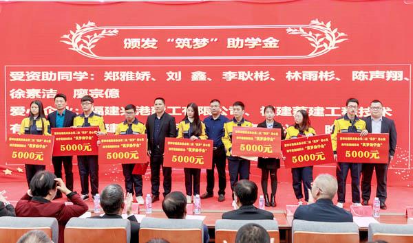 爱心点燃希望,学子筑就梦想。12月10日,市住建局、市建筑业协会第二届“筑梦”奖助学金发放仪式在湄洲湾职业技术学院举行,资助该院建筑工程系46位生活困难、品学兼优的同学,奖励乐教奉献的6位老师,合计15.9万元。仪式上,湄职院、市住建局、市建筑协会联合为郑炜等20多个爱心企业、企业家颁发荣誉证书。
