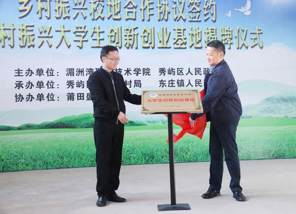 12月15日,湄洲湾职业技术学院与秀屿区东庄镇政府签订乡村振兴校地合作框架协议。同时,大学生创新创业基地、社区教育共建基地揭牌成立。