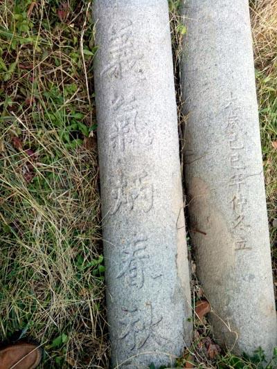 此石柱联今存梅峰寺东廊外梅园空地上。