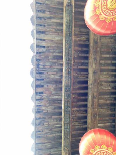 梅峰寺天王殿后瞻拜亭的檐檩上阳刻:檀樾主宋殿前制幹李讳富裔孙,住持尊山西园寺传曹洞正宗第三十六世法厚偕徒孙心耀、曾孙子亮、元孙道文、来孙雪岩、晜孙舜仁、礽孙禅模全捐白金重整。(吴国柱)