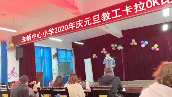 本报讯 为了丰富教职工的业余文化生活,展现教职工的才艺,构建团结、和谐、健康、向上的校园文化,给教职工提供一个展现自我的舞台,12月27日,东峤中心小学隆重举行“庆元旦 迎新年”教职工卡拉OK歌唱比赛活动。