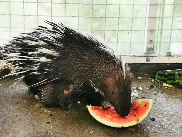 豪猪吃块西瓜降个温!