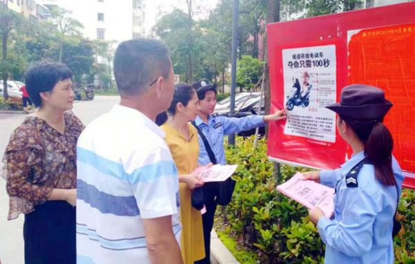 此次宣传活动,共发放宣传资料3000余份,巡查小区16个,发现问题隐患12处,整改12外。进一步提高了群众安全规范使用电动车的消防安全意识和逃生基本技能,有效预防了电动车火灾事故的发生,为辖区居民营造了和谐稳定的消防安全环境。 (廖美珊)