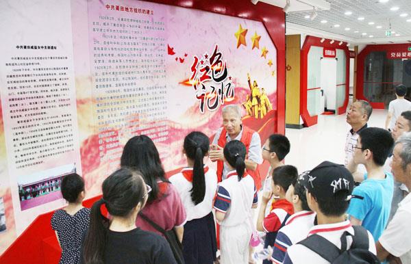 荔城区镇海街道文献社区关工委20多年来,每年都组织社区返乡中小学生开展寒暑假夏令营活动,对孩子们进行内容包括时事报告、法律知识、心理健康、拒绝毒品、防火防盗、反对邪教、珍爱生命和科普知识等相关知识教育,还组织他们到有关部门进行军训感受军营生活,让孩子们欢度一个健康向上、文明舒适的假期。图为参加暑假夏令营的孩子们在“红色记忆纪念馆”中参观,接受革命传统教育。 (芹芹)