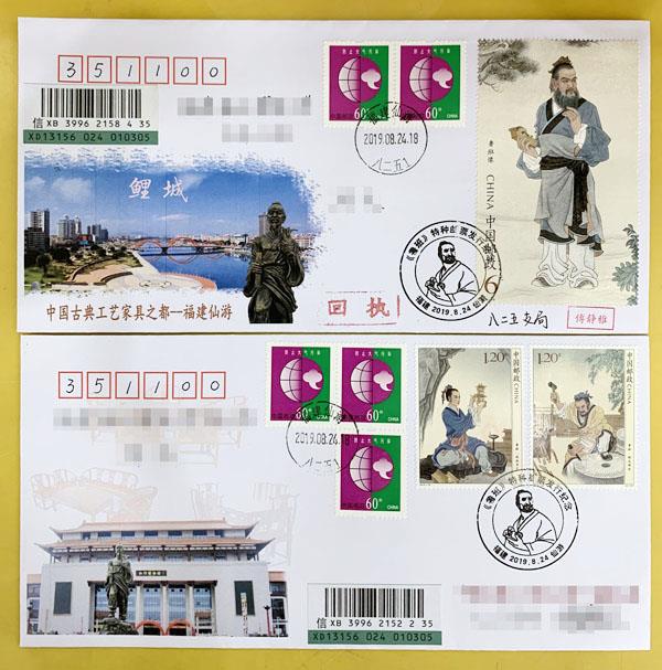 8月25日,《鲁班》邮票首发仪式暨新中国成立70周年邮票展览活动在全国重点文物保护单位——福建省仙游县文庙隆重举行。邮政部门为此发行题为“传承和颂扬鲁班的工匠精神“的纪念封1枚,启用纪念邮戳1种。