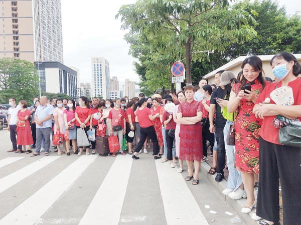 在莆田一中考点外,很多考生的女家长都穿上了旗袍和红裙,而有的男家长则穿上了红色T恤。这一大群队伍在考场外组成了一道特殊的美丽风景。考生家长告诉记者,高考陪考家长都流行穿旗袍,寓意“旗开得胜”,穿红色衣服则寓意为“开门红”。考生家长何女士告诉记者:“用这种方法给孩子加油打打气,我们希望他能平常心对待不用担心考不好,只要正常发挥就行,我们等他旗开得胜,他的妹妹也来为他加油!”