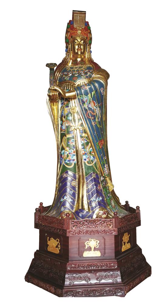 在湄洲妈祖祖庙莆田会馆的那尊景泰蓝妈祖,我专门去看过,3.23米高,寓意着妈祖生日。林辉说,他原来做的景泰蓝作品都以小件的为主,这尊世界最高的景泰蓝妈祖像是他2015年开始做的,2017年才制作完成。在他决定制作这么高的景泰蓝妈祖像时,他儿子曾反对过:“不仅要耗费很大的资金成本和时间精力,而且制作难度十分大。这么大,若制作失败,或做出来了没有被人收藏,反而会造成负担。”但林辉执意要做,他认为冥冥中有妈祖在指引他去做,他认为妈祖一定会保佑他成功。