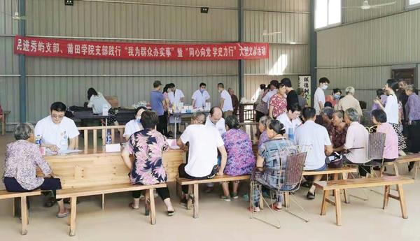 本报讯 近日,民进莆田学院支部和民进秀屿区支部联合组成医疗下乡服务团队深入秀屿区笏石镇丙仑村,开展送医送药、医疗咨询、卫生宣传活动。