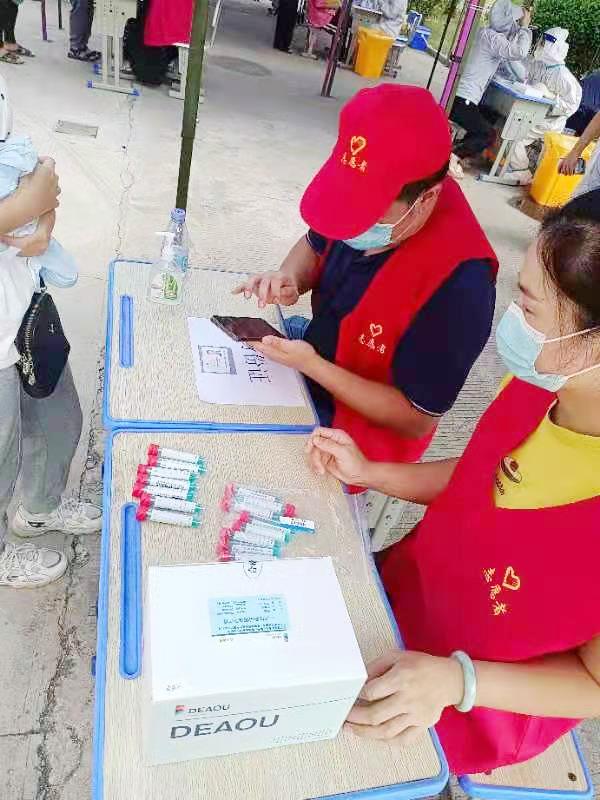上午9点左右,当医护人员刚抵达核酸检测采样点,教师志愿者们就立刻投入工作协助医务人员开展核酸检测工作,做到定人定责,有序分工,全力以赴。大家坚守在核酸检测现场,忙碌于村民信息录入、人员分流引流、维持秩序、宣传教育,以全心投入的热情、耐心细致的温情服务群众。