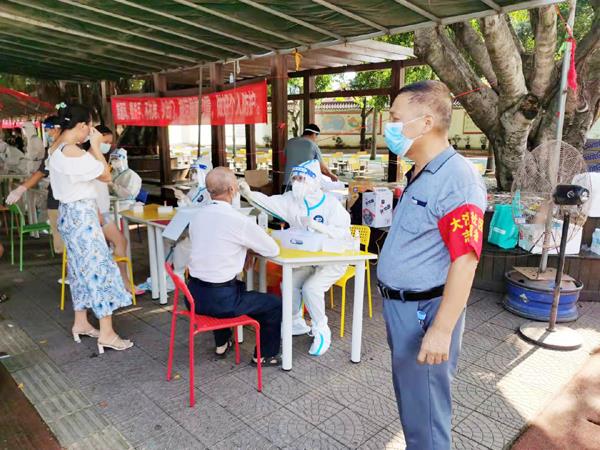 该社区支部书记林俊建在接到疫情情况通报后,于9月11月凌晨二点就与社区两委干部,组织安排本辖区内各条路口进行封闭管控工作,并告诫居民在未完成核酸检测前不要离家出走,并亲身巡迴各路口检查封闭情况及到检测现场指导居民接受检测具体事项。在支书林俊建的帶动和影响下,该社区自发报名参加义务“志愿者”就有100多人,刚从部队退役返乡的林旭面临这严峻的疫情他也闲不住了立即上战场与志愿者共同参战,在检测开始的第一时间便来到检测现场,指导帮助那些老人、妇女解释检测知识和办理核酸检测事项,直至检测结束,虽然已饥肠辘辘,汗流浃背,但无怨无悔!