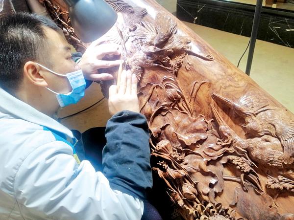仙游古典工艺生产车间技术师傅在专心地精雕细镂