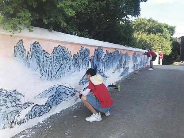 活动中,志愿者们通过走访调研了解村庄近年来发展变化,充分发挥专业优势,结合乡村振兴和红色元素,完成了“不忘初心,牢记使命”和“山河壮丽颂党恩”两面墙绘,献礼建党百年,使之成为村庄入口的一道美丽风景线。墙绘过程中,志愿者们不怕苦不怕累,得到了当地村民的赞扬,村民们也纷纷参与到墙绘的构思和涂色过程中。此外,志愿者们还为当地留守儿童上了一堂简易的美育小课堂,将绘画小知识和党史小故事融入其中,播撒乡村美育火种,传递红色精神。(时报记者 翁志鹏 通讯员 王希宁)