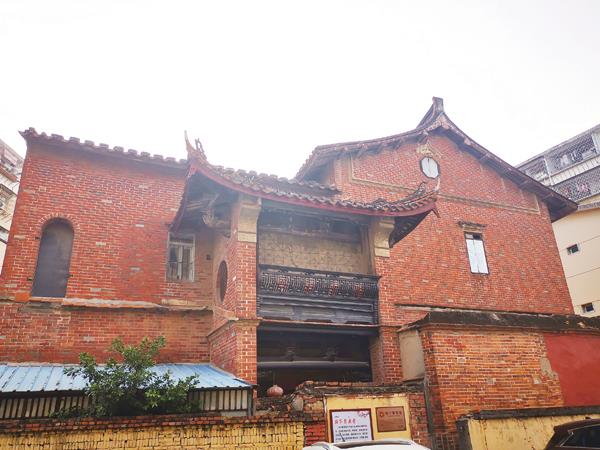 回到楼下街,向南走,临近新桥头,左手边,是最近修葺一新的广镇楼。它给我留下的第一个印象,便是那几根圆形的红砖柱。与它斜对面的,是“馨美堂”,也是萝苜田片区十分有代表性的建筑。