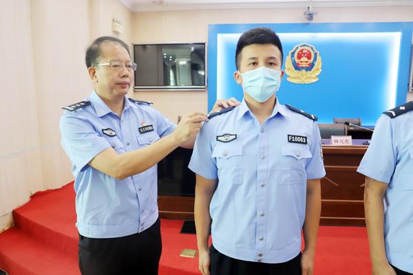 本报讯 辅警队伍作为一支重要的警务辅助力量,在公安机关开展的各项工作中发挥着重要作用,城厢公安分局大胆探索辅警队伍规范化管理工作,积极为辅警成长进步创造条件。8月4日上午,城厢公安分局举行授辅警衔仪式,全局90名辅警身着新分发的正式辅警制服参加授衔仪式,其中46人为今年新招录辅警。仪式上,分局领导与全体辅警签订了劳动合同,并为新辅警授警衔和工作证。