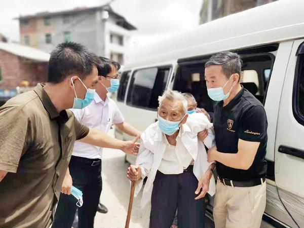 当日,在龙山村主任林光祚亲自驾车护送下,林育郎从距离集镇区5公里外的龙山村新外头组由儿子林宗程和村干部接到镇卫生院预约接种新冠疫苗第一针。在疫苗接种点,镇里领导蔡永杰等人小心翼翼地搀扶着拄着拐杖的老人下车、慢慢走进接种点;在接种区,老人主动配合接种医生,医护人员对老人身体健康状况进行了综合评估和一系列详细询问,确认老人健康状况稳定,且无相关禁忌症后,为挽起袖子的老人成功进行了疫苗接种。经过30分钟的观察,老人身体一切正常,无任何异常反应。