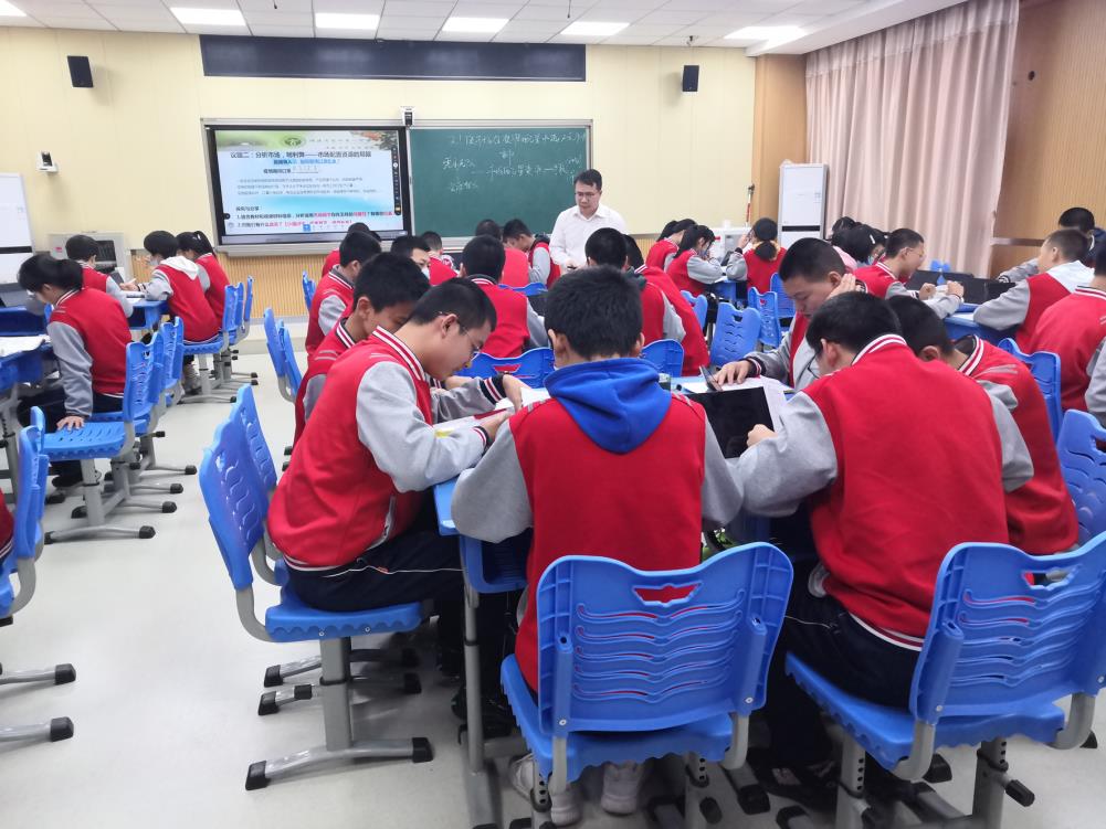 打造高效课堂以课前、课中、课后这几个方面去推进。课前我们一般以年段备课组为单位进行集备。在集体备课过程中我们群策群力。因为每个教研组及以下备课组中,都有年轻的老师在信息2.0技术方面勇于探索,但教学经验欠缺。而老教师则相反,这样他们形成互补,备课组就可以高效完成。备完后发送到备课组中,就可以共享,达到高效备课的效果。在课堂上,老师更多的是作课堂的引导者。课中通过本学科特别要求,创设更多的情境。如生物学科,真实情境导入后,我们安排一些带有科学思维科学探究的任务之后,更多地把时间交给学生。让学生们相互促进相互启发,让学生更自主地创建他们的知识体系。最后由老师来总结提升补充。课后的检测利用信息2.0技术,依托纳米智慧黑板设备进行点对点的个性化指导。智慧课堂的推进反响较好,特别是对学生不会的地方可以推送给他们,他们就能够很好地查缺补漏。