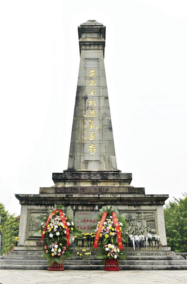 纪念碑前花簇簇, 人群肃穆愐元勋。