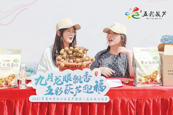 市人大常委会副主任蔡国萍、莆田学院党委副书记翁若平等出席龙眼文化节开幕式,并为五彩萩芦品牌揭幕。