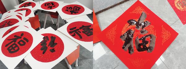 在金井社区“党建+”邻里中心,民进莆田开明画院书画家和书法爱好者挥毫泼墨、笔走龙蛇,写出一副副寓意祥和的对联、一个个翰墨飘香的“福”字,描绘了人们对美好生活的憧憬,增添了浓浓的年味。