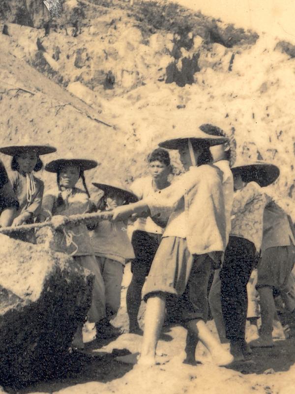 东圳水库建设者中,妇女占60%以上。她们移山筑坝走前头,涌现出闪电突击队、巧姐妹突击队、十仙女模范、女子打夯队等先进团队。(图片/莆田市东圳水库管理局提供)