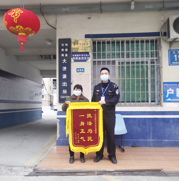 一面锦旗、一份鼓励、一句感谢都是对我们工作的肯定,也是我们的荣誉。大济派出所始终践行“我为群众办实事”,将以更加饱满的精神状态投入到工作中去,会更加努力的用实际行动践行为民服务的宗旨和誓言。(陈国松 郑奋彬 郑施莹)