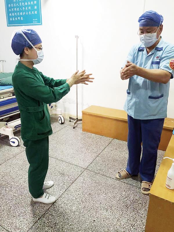 仙游县政协委员、仙游县总医院手术室护士长黄杰在一线指导保洁人员做好防控。