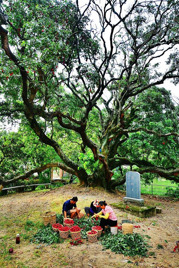 位于荔城区新度镇下横山村的“荔枝王”,已有930多年树龄,树高10多米,地表径围6.8米,依然生机勃勃,树冠覆盖面积达一亩多,2003年被列入“国家一级古树名木”保护名录。(摄影/曾炳麟)