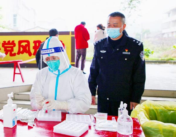 丈夫陈建泉是仙游县公安局的一名警务干部,同样身为党员的他第一时间请战,冲锋在抗疫一线。3月25日上午,他率领单位小队在仙游大济镇抗疫前线维持秩序,得知妻子刚好在自己的辖区做核酸采样,便顺路前往探望。为了不打扰妻子的工作,他默默地站在妻子背后,静静注视着她忙碌的身影,没有任何语言,却胜过千言万语。