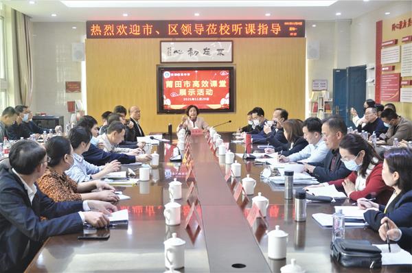 近日,莆田市委常委、宣传部部长陈惠黔带领市委宣传部副部长唐炳椿、及相关分管领导、市教师进修学院院长柯建俊及各县区宣传部长、教育局局长和部分县区中学校长莅临擢英中学观摩指导高效课堂示范课展示活动。
