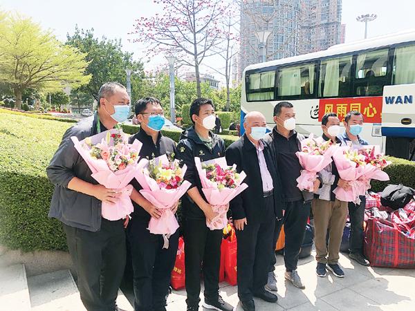本报讯 星夜奔赴抗疫一线,花开时节凯旋而归。4月6日上午,在连绵不绝的掌声中,几辆大巴车缓缓驶入市政府广场,莆田市直单位党员干部赴仙游战疫工作队527名队员圆满完成任务,平安返程。市委组织部、市委市直机关工委为战疫工作队举行了返程欢迎仪式。