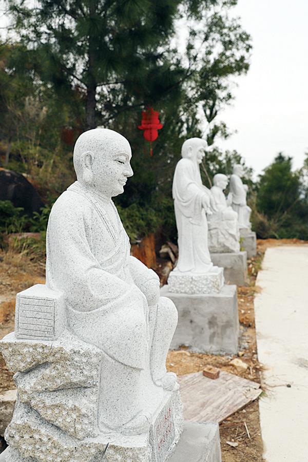 近年来,当地在“第一山”的山顶斥资修建休闲文化公园,在园内道路两旁立有造型各异的108尊石刻罗汉像,建有一座观景亭以及一座慈祥而又庄严的三面观音像,成为邻近村民健身、观光、休闲之地。