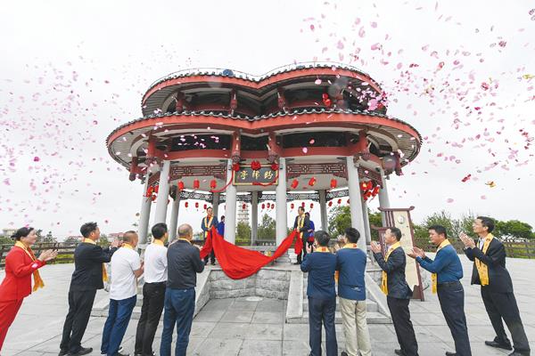 5月15日上午,平安塔广场照壁剪彩和盼归亭揭牌仪式在湄洲岛天妃故里遗址公园举行。