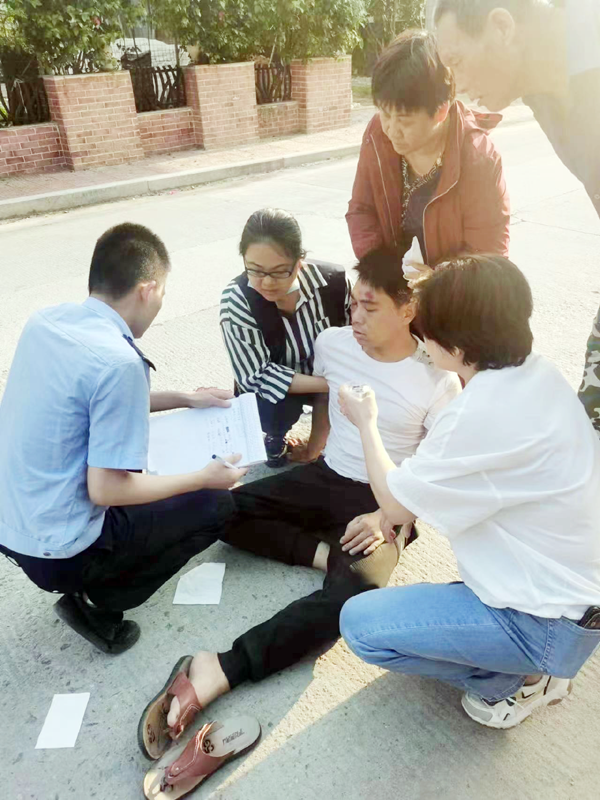 “前面好像发生了车祸!快去看看!”网格员工作途中遇到了两辆电动车在洋坑村欧厝路口发生碰撞。两名网格员见状迅速上前询问情况,发现其中一名车主摔倒头部受伤流血。网格员立马上前照料受伤车主,喂其温水,不间断与伤者保持交谈,使伤者保持意识清醒,并为他简单伤口止血,及时通知其家属。另一名网格员同时拨打了110、120电话,详细说明了交通事故的位置以及伤者的基本情况。