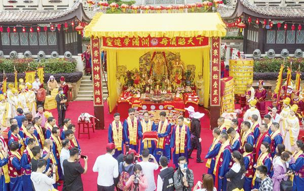 5月22日,广东省汕头市华阳珠珍宝圣祖庙诣湄洲妈祖祖庙参访进香暨闽粤两地民间文化交流活动在湄洲妈祖祖庙举行,闽粤民间文化交流再添新足迹。