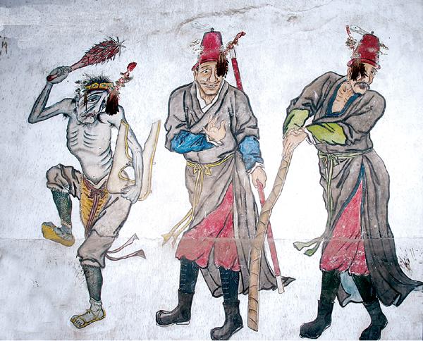 (3)八班:戴竹编高帽,不戴面具,服饰与皂隶相同。