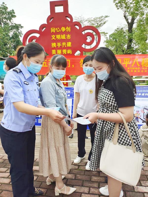 本报讯 为进一步提高居民识诈防诈意识,全力守护好群众“钱袋子”,预防和减少电信网络诈骗案件的发生,笏石派出所坚持打防结合、预防为主,开展多维度、多层次、多样式的反诈宣传工作。5月28日下午,“全民反诈”集中宣传活动在土海公园召开,本次活动由秀屿分局刑侦大队和笏石派出所等打击新型电诈违法犯罪成员单位联合开展。活动中,民警带领辅警、网格员零距离、面对面向群众介绍诈骗分子的惯用手法、作案方式及防诈常识等相关知识。