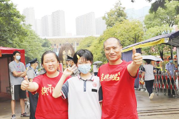 6月7日上午,莆田一中考点,家长和考生开心祝福