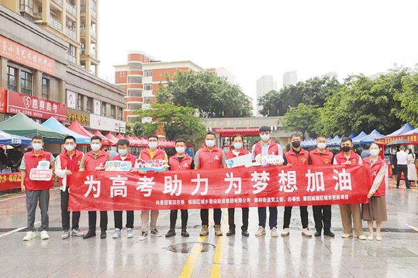6月7日上午,莆田四中考点,共青团莆田市城投集团支部组织团员护航高考、助梦远航
