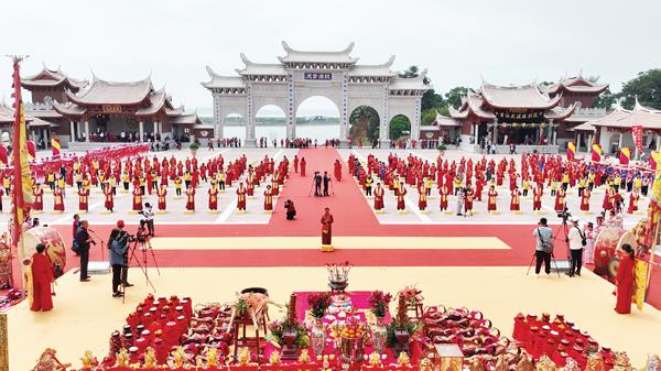 同谒妈祖,共享平安。11时,贤良港天后圣殿朝圣广场上千名妈祖敬仰者有序列席参加祈福大典。司仪手捧“奉旨谕祭”牌宣布“鸣礼炮”,金锣十三响、进香,向妈祖行三叩九跪诸礼;礼毕,宣读祭文;行五献礼,礼毕。焚金帛,礼成,锣鼓大作、鞭炮齐鸣,整个仪程庄严隆重。