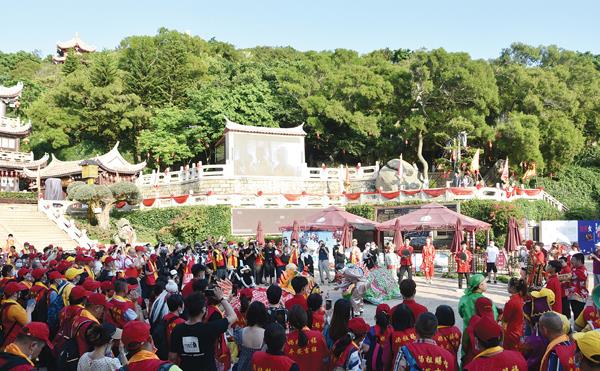下午4时许,郑晓洁率队抵达湄洲岛。随后,进香团众人恭请分灵妈祖一路踩街前往祖庙。队伍前方,英歌队成员挥动手中的英歌槌,在激昂的鼓点声中起舞,极具潮阳特色的民俗表演吸引大量香客游人驻足拍摄。